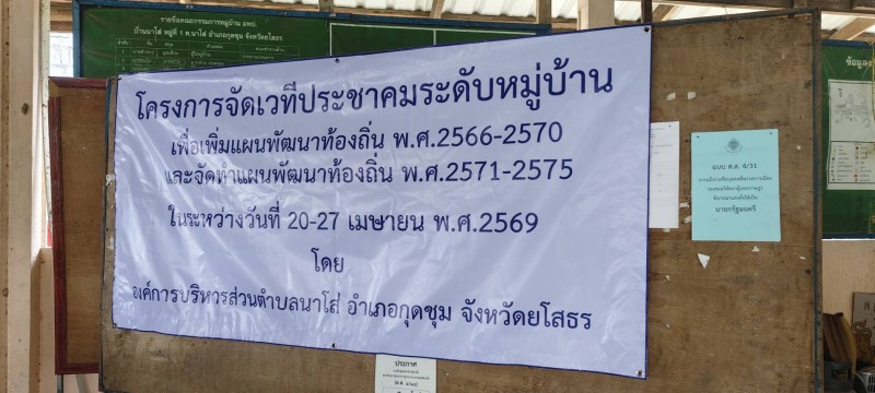 หัวข้อ :: วันที่ 20 เมษายน 2569 นายศักดิ์สิทธิ์ ศรีมันตะ นายกองค์การบริหารส่วนตำบลนาโส่ พร้อมด้วยรองนายกองค์การบริหารส่วนตำบล พนักงานส่วนตำบล และพนักงานจ้าง ได้จัดเวทีประชาคมระดับหมู่บ้าน ณ ศาลาประชาคมบ้านนาโส่ หมู่ที่ 1 ตำบลนาโส่ อำเภอกุดชุม จังหวัดยโสธร